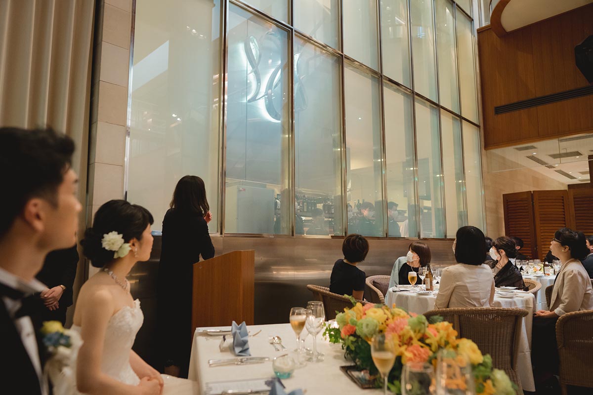式場の雰囲気も良く、天井が高く開放感と高級感のある内装でとても良い雰囲気を作れると感じました。また、私たちのやりたい事に対しレストランのシェフ、スタッフの皆さんがご協力頂ける式場だという印象を受け、実際にお料理に特別なメニューを入れて頂いたり、当日の急な変更等にも柔軟に対応して頂き、とても満足のいく結婚式となりました。