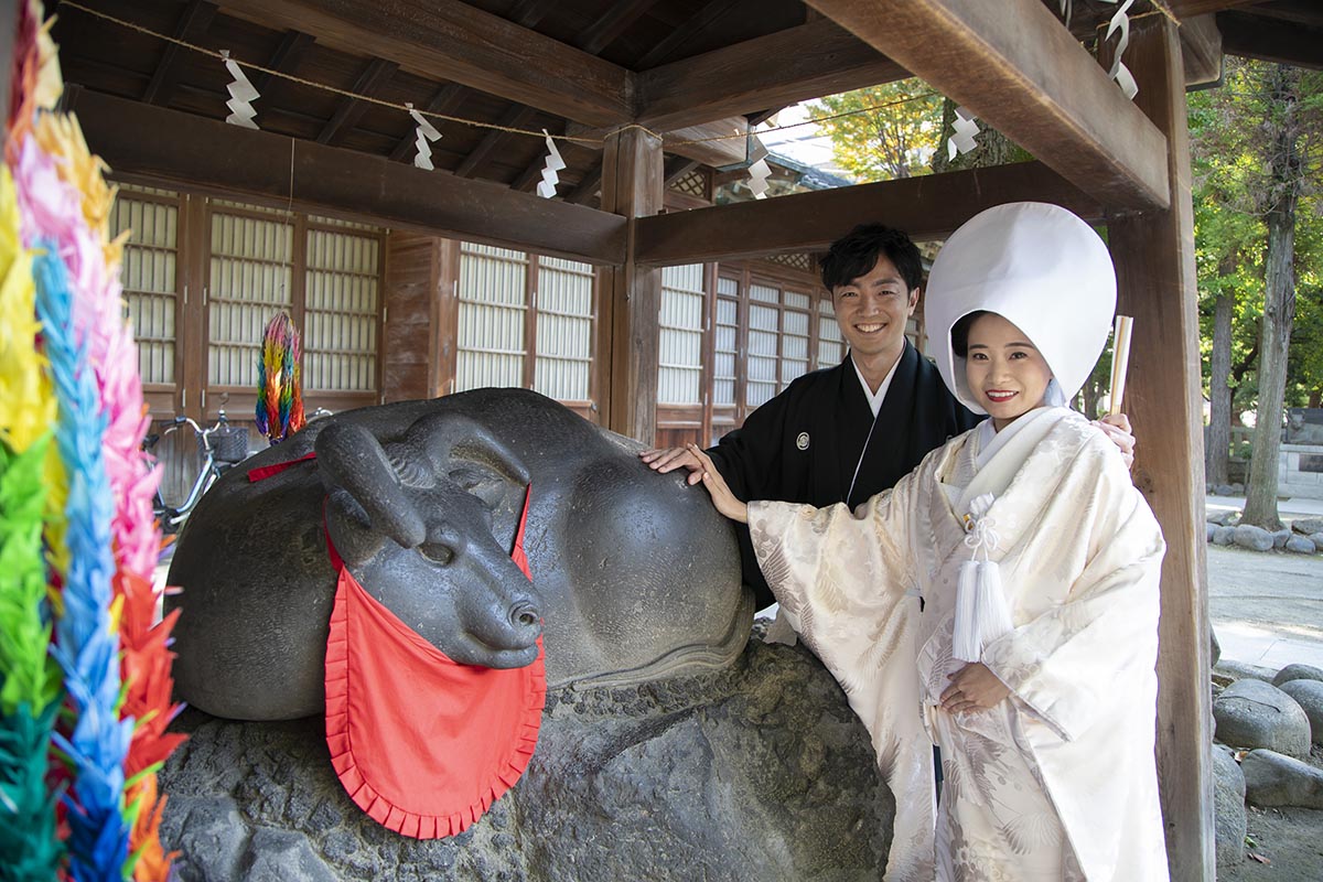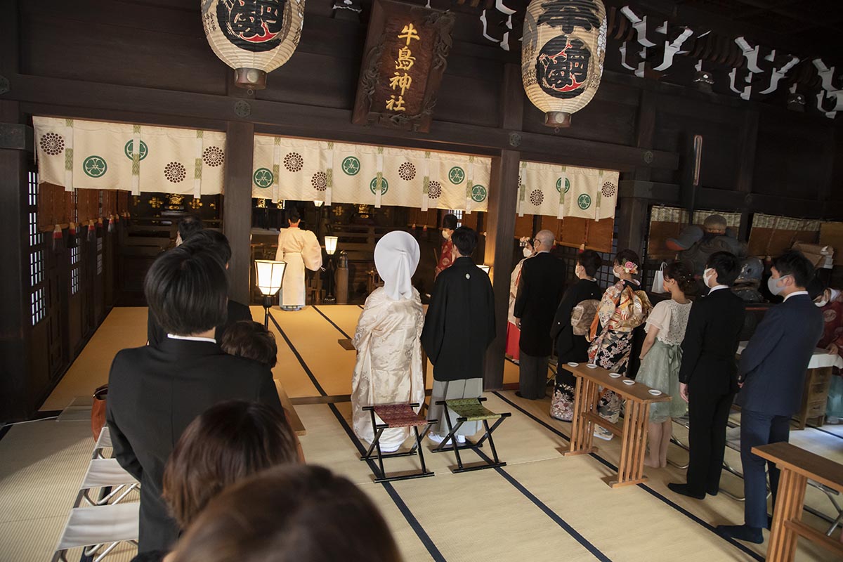 牛嶋神社は新郎が東京で初めてのひとり暮らしをした家の近所にあった神社だったので親しみ深く、縁を感じて決めました。賑やかすぎず落ち着いた雰囲気ながら、浅草やスカイツリーも近いため、遠方から集まる親族にも喜んでもらえると思いました。