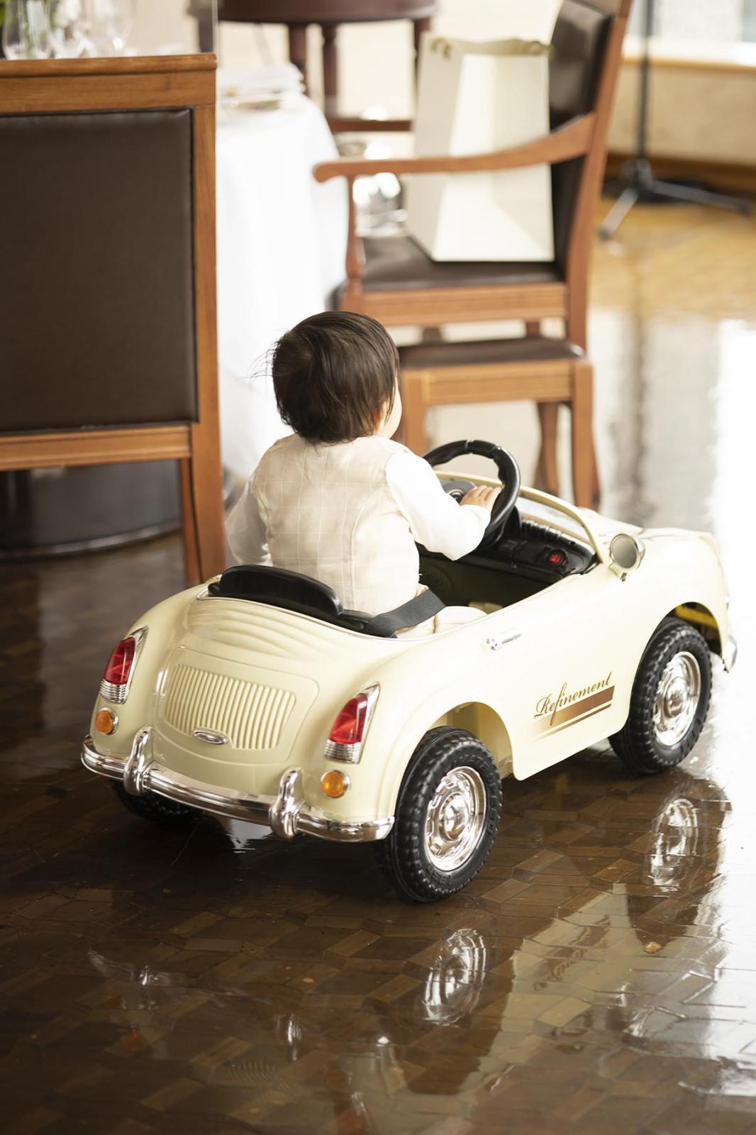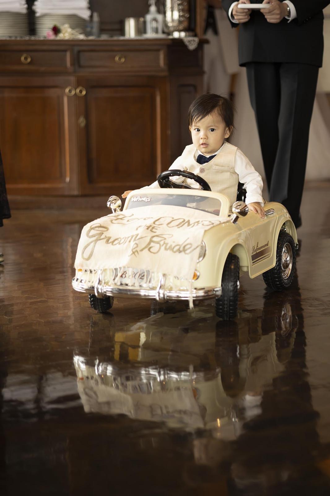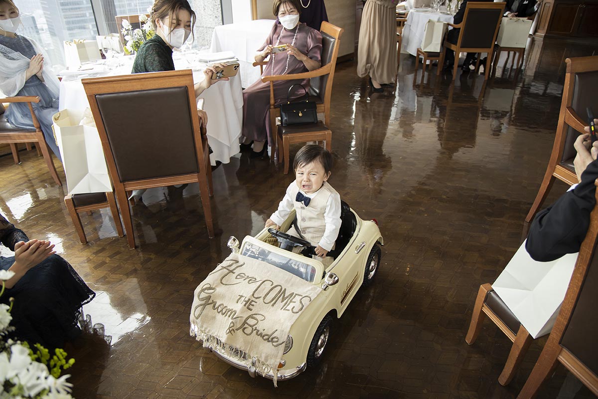 入場時は子どもにラジコンカーに乗って登場してもらい、皆から大好評でした。