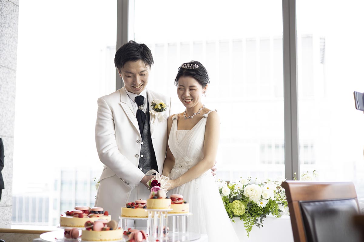 ウェディングケーキはマカロンがあしらわれており、見た目が可愛いらしく、気分が上がりました。