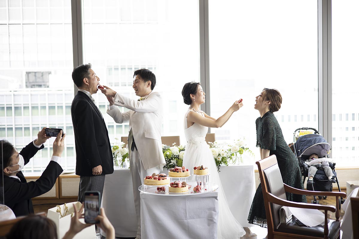式当日は新婦の誕生日だったのですが、ケーキ入刀後は誕生日が近い家族を呼んで「バースデーバイト」にしました。