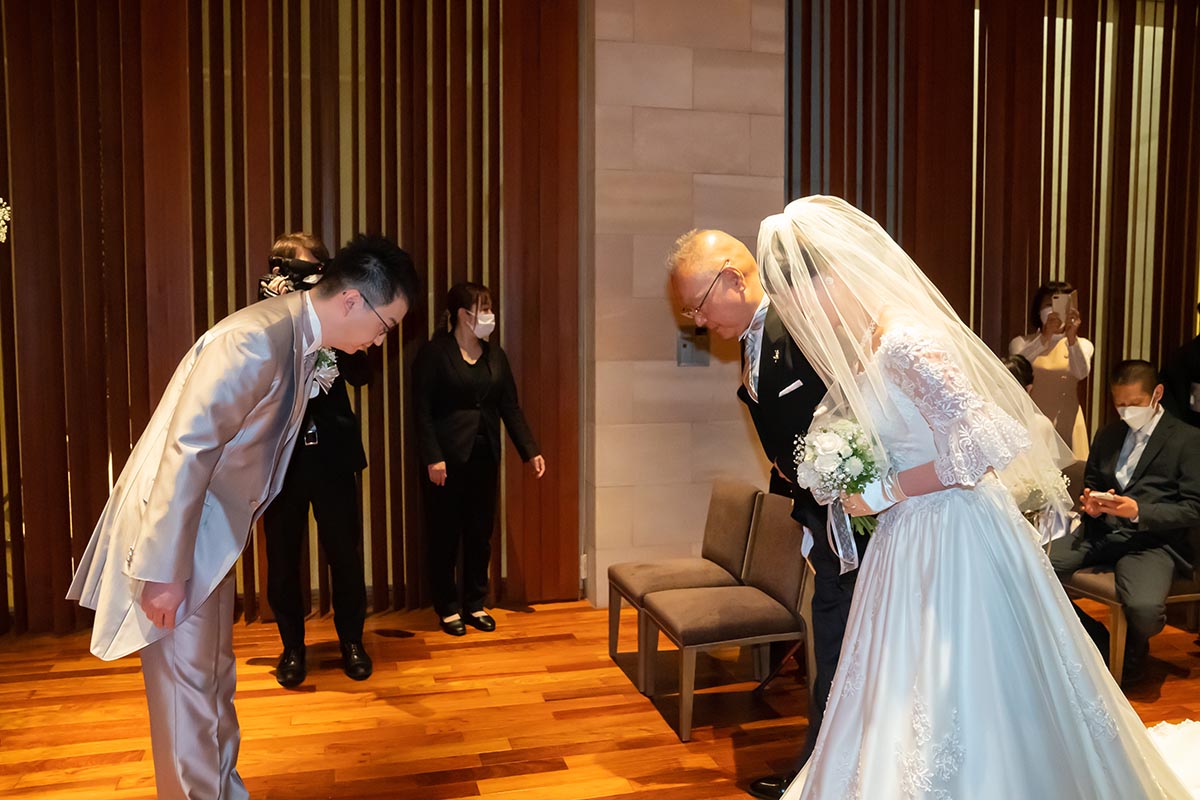 親族だけの式ということもあり、披露宴のような形式にはせず、食事会の形式をとりました。このご時世のため、新郎側・新婦側も、初めて生で対面する親族もおり、和やかな雰囲気で、食事を楽しみながら会話をして、顔合わせも兼ねたものにしたいと思っていました。両親への手紙などは人前で読み上げることは気恥ずかしかったため、行いませんでしたが、最後に渡した花束は、とても喜んでもらえ、組み込んでよかったと思っています。