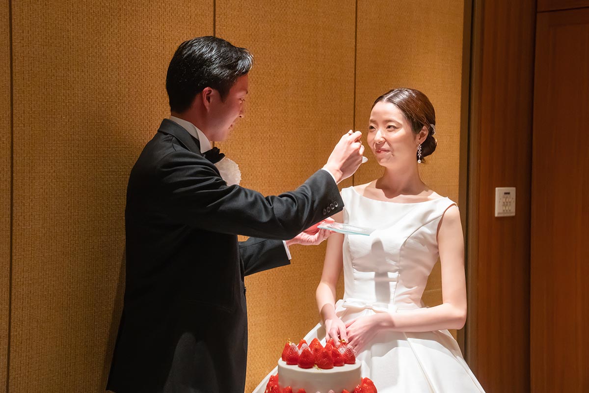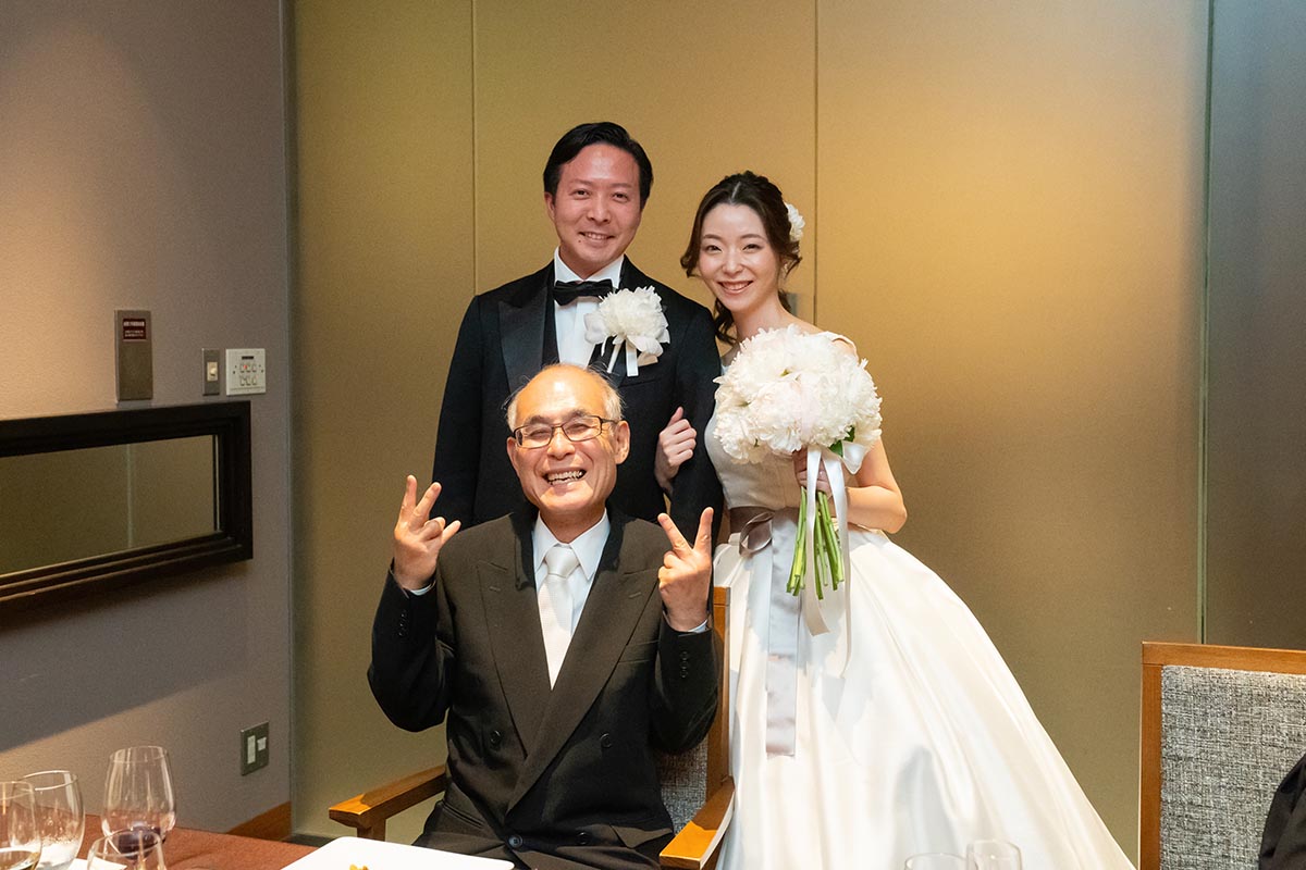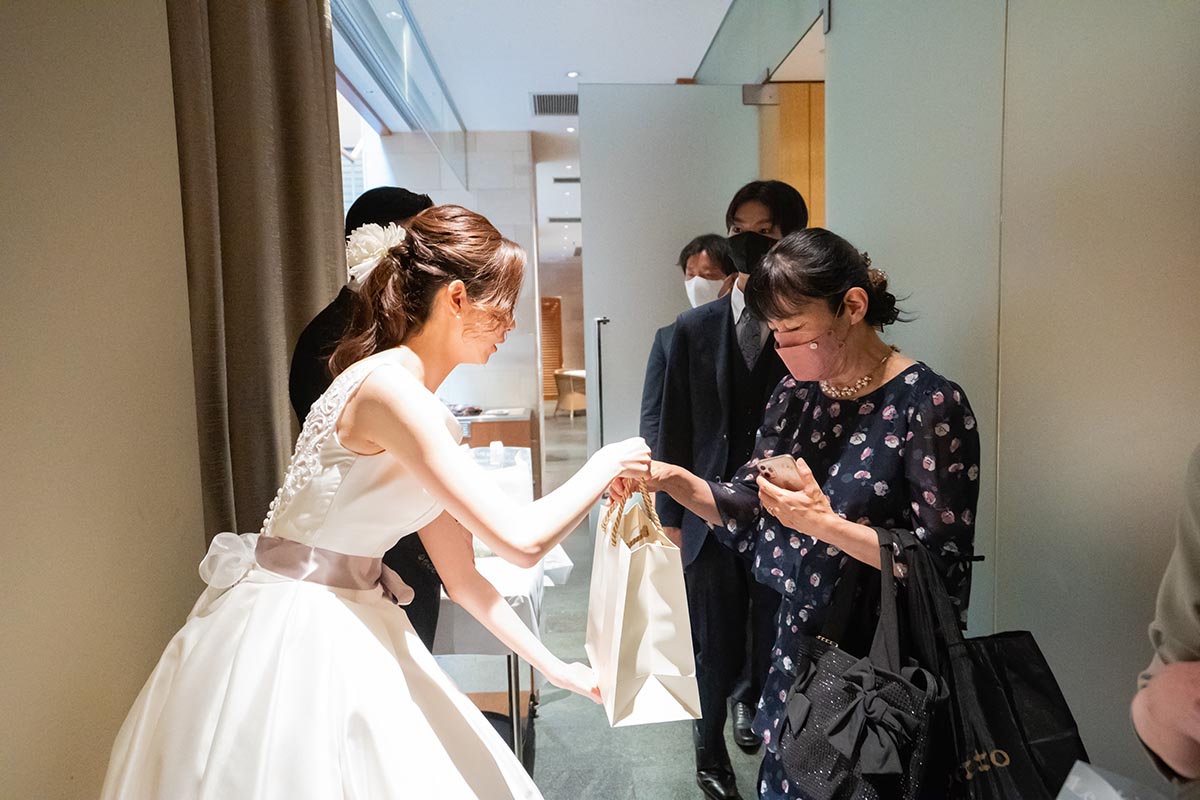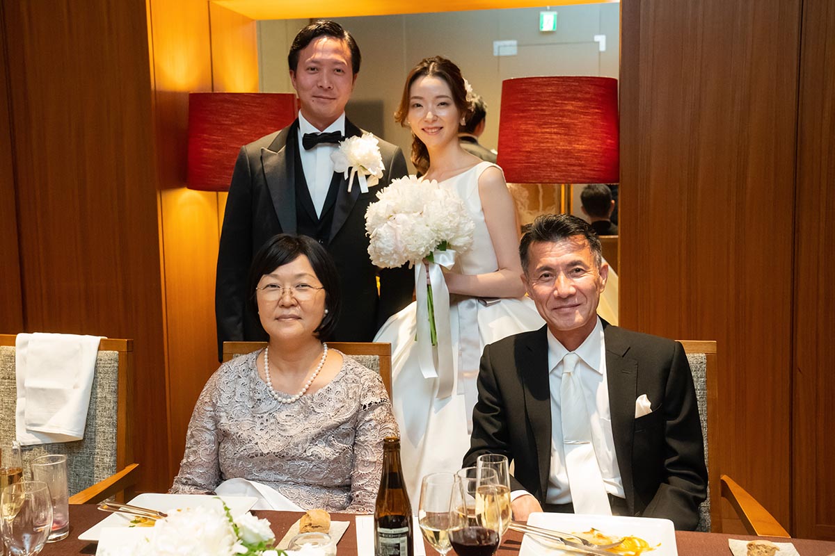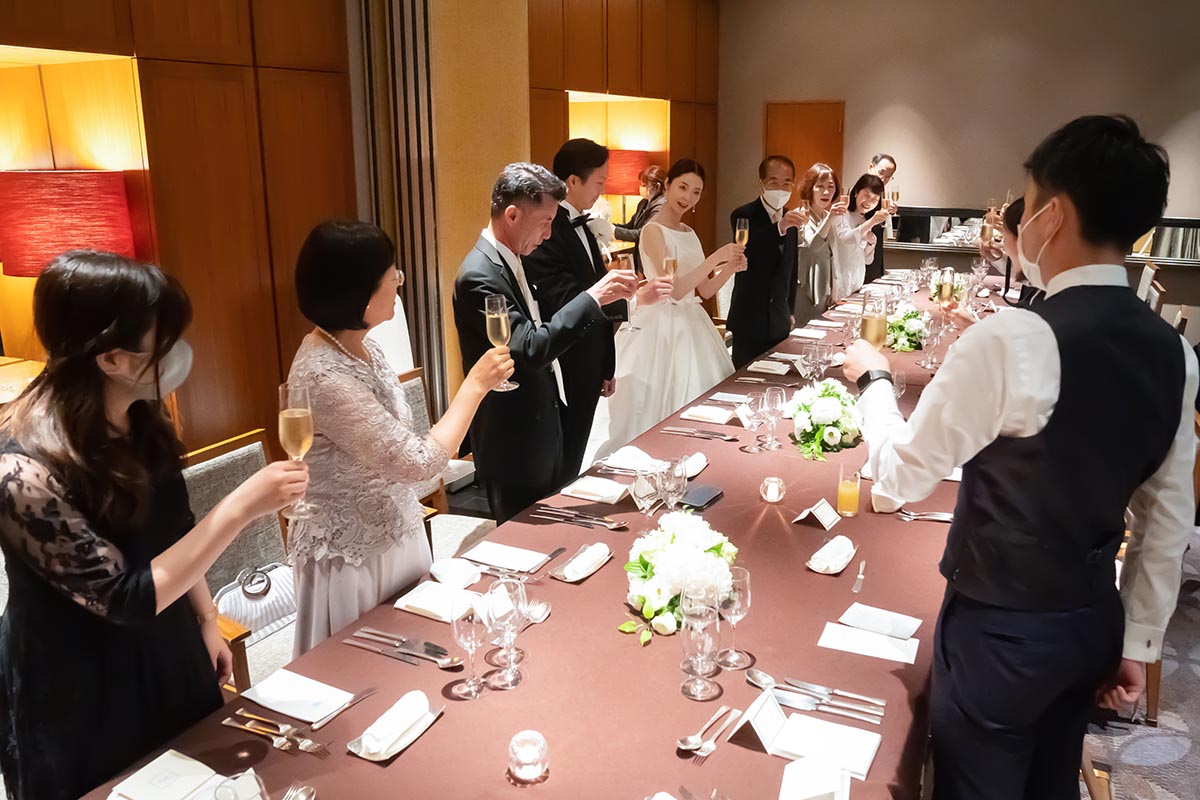 親族だけでの会食だった為、ゆっくりとお食事を楽しんでもらいたかったので特別な演出などはありませんでしたが、親族紹介やケーキ入刀、両親へのプレゼントなどを食事の合間に盛り込んでいただきました。ケーキ入刀では、お母さんへのサンクスバイトも喜んでもらえました。