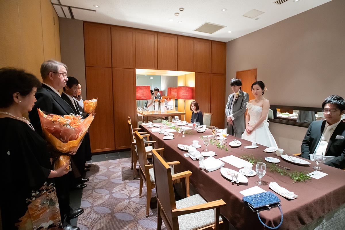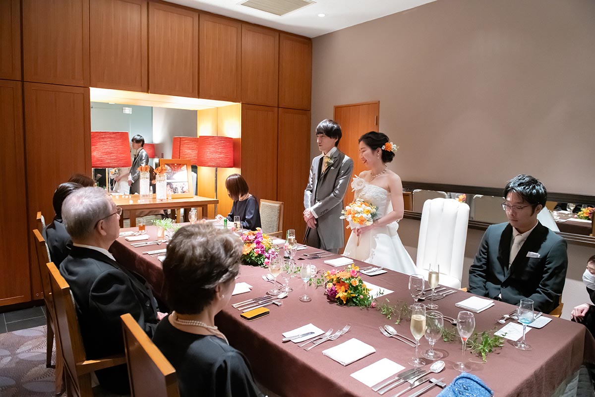 個室を使用して、落ち着いた雰囲気で両家と美味しいお料理を食べながら歓談ができるようにした。