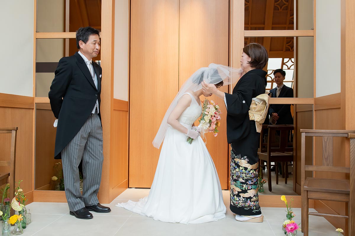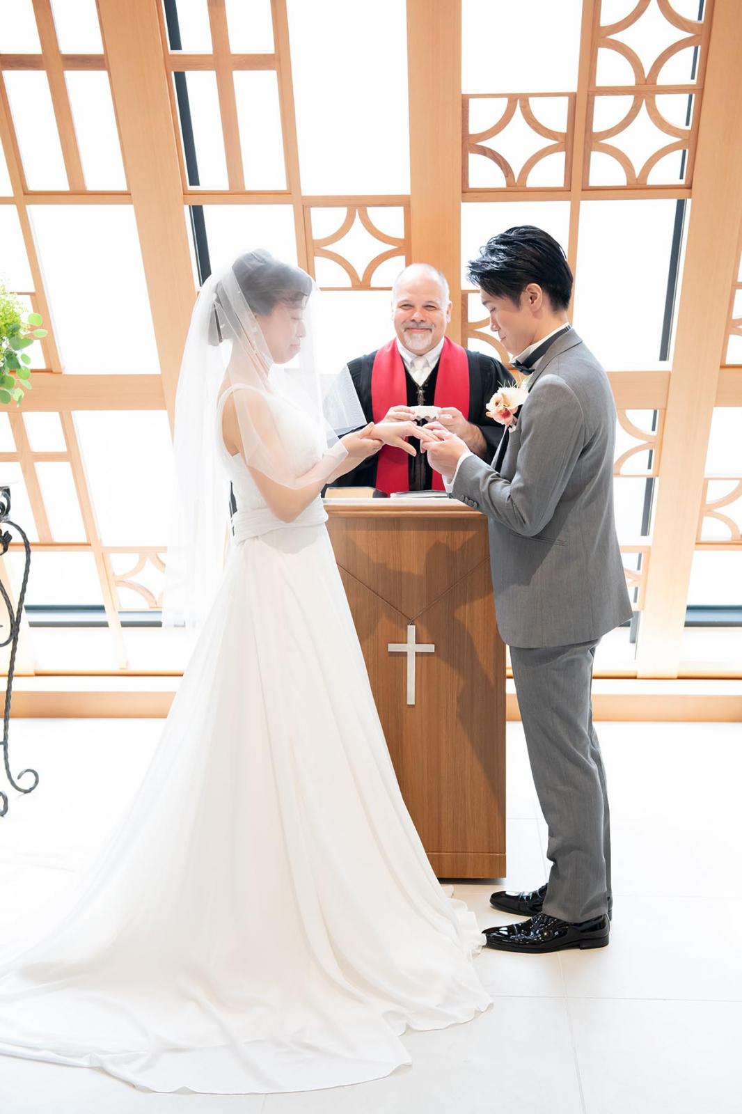アクセスが良く、祖父母にも参加してもらいたいかったため、駅からも近いこちらの会場を選びました。チャペルの正面がガラス張りになっており、自然光がたくさん入ってくるため、明るい雰囲気であったこと、