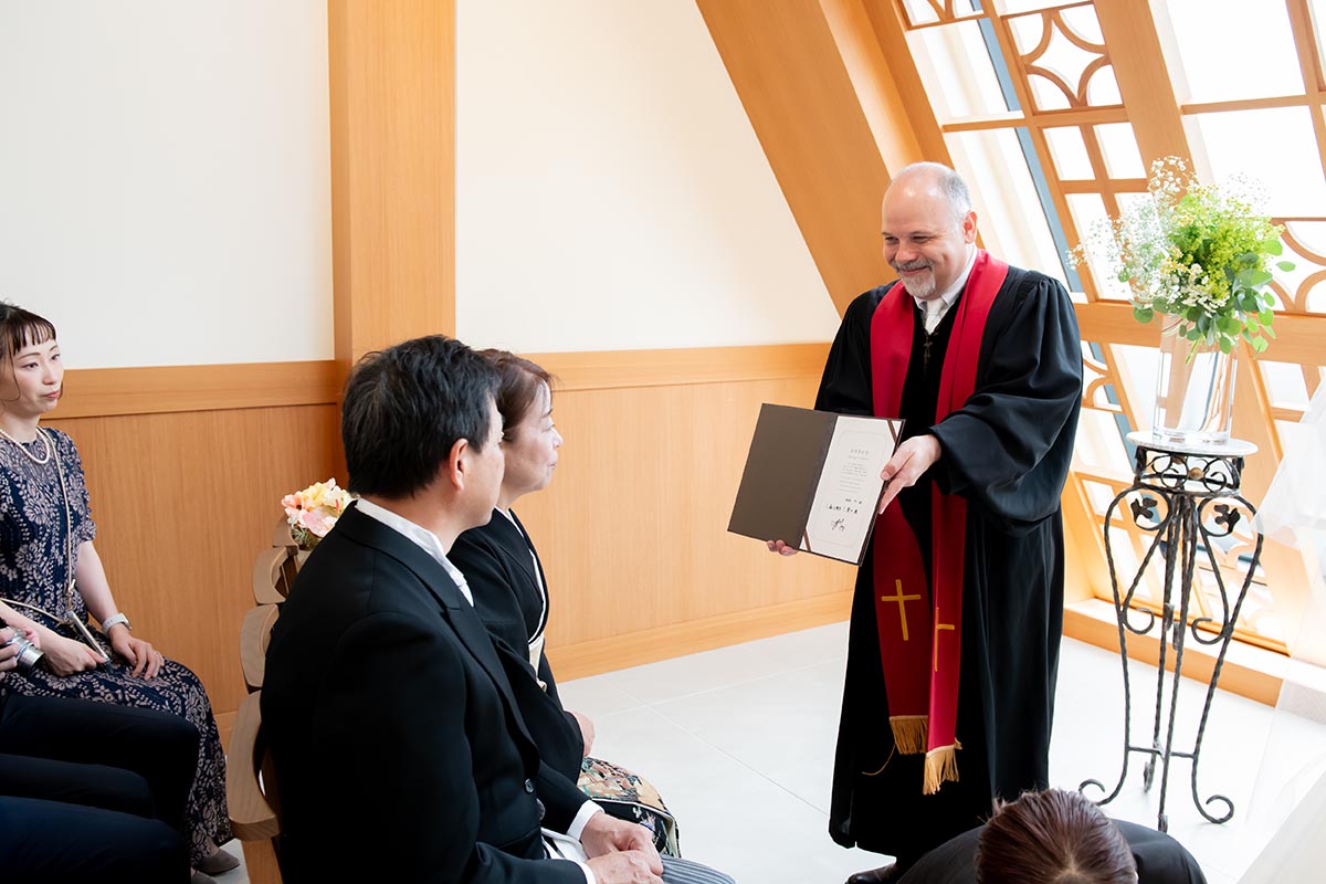 木目調の内装も希望していたナチュラルな雰囲気とマッチしていた点も決め手となりました。こちら側の細かい要望までしっかりと聞いていただき、また、打ち合わせの際プランナーさんも気さくに対応してくださったため、最初から最後まで気持ち良く進めることができました。家族だけの少人数での挙式を希望していたため、会場の規模からしても丁度良いと感じました。