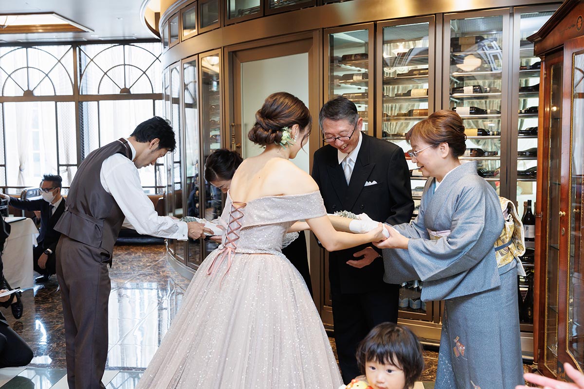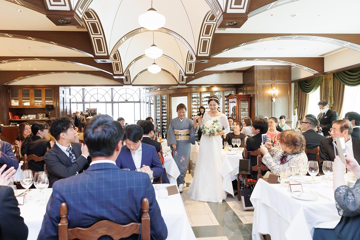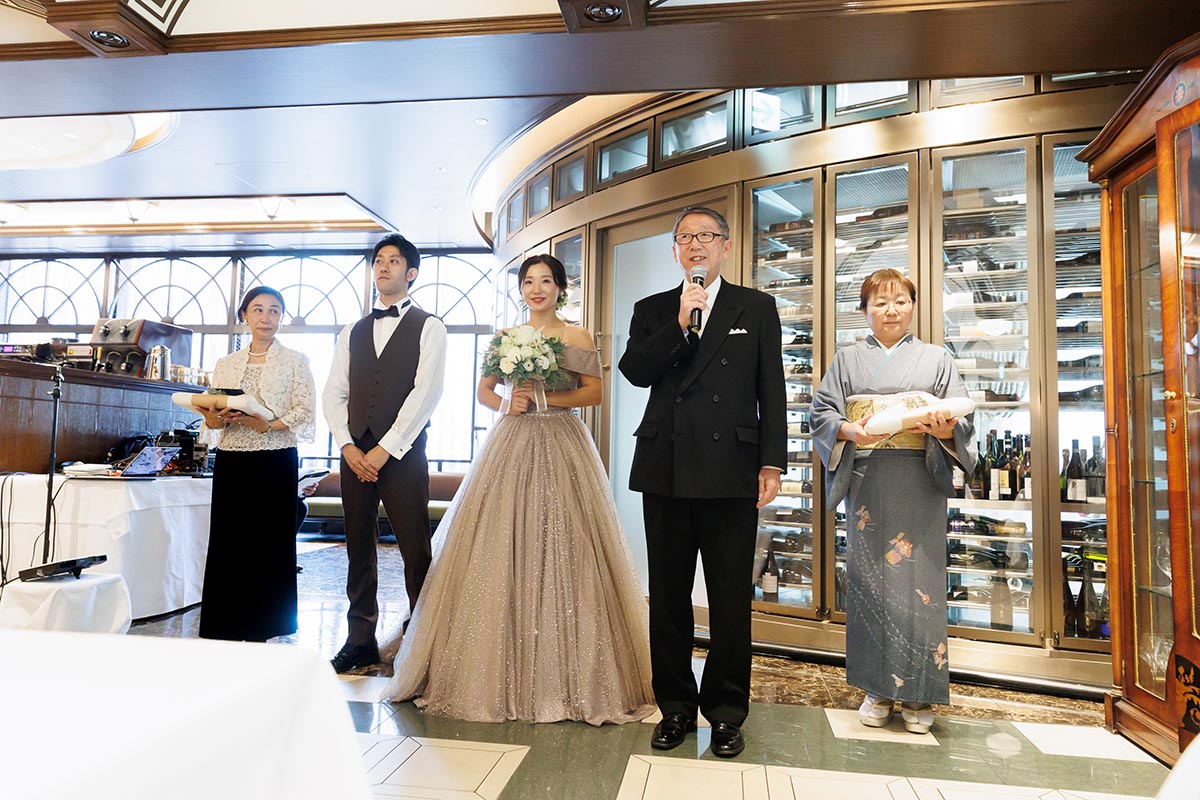 ゲストには気楽にお食事を楽しんでいただきたかったので、スピーチなどは無しにして、乾杯の挨拶や中座エスコートは全て親族にお願いしました。思い描いていたアットホームなウエディングパーティーを形にできました!
