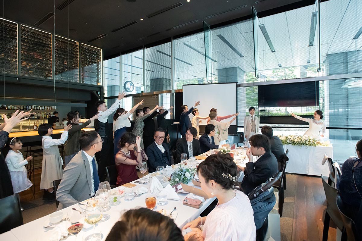 ・ケーキ入刀は、ファーストバイトを無くし、参加者が料理を楽しめる時間を増やした。