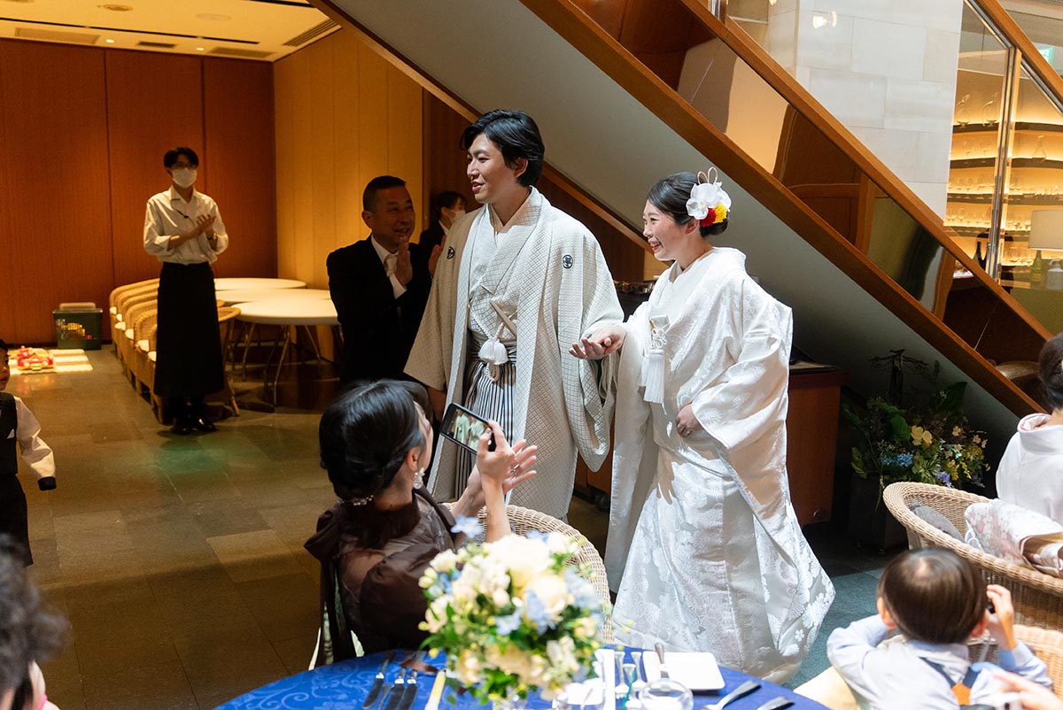 本番ではスタッフさんのお力添えもあり,最高の披露宴にすることができました。