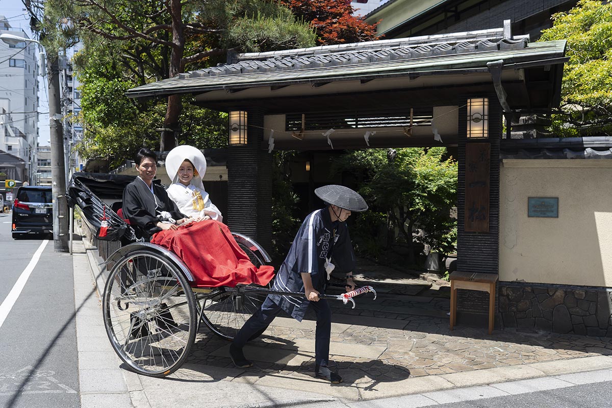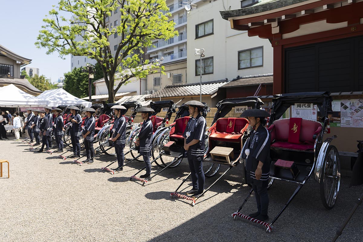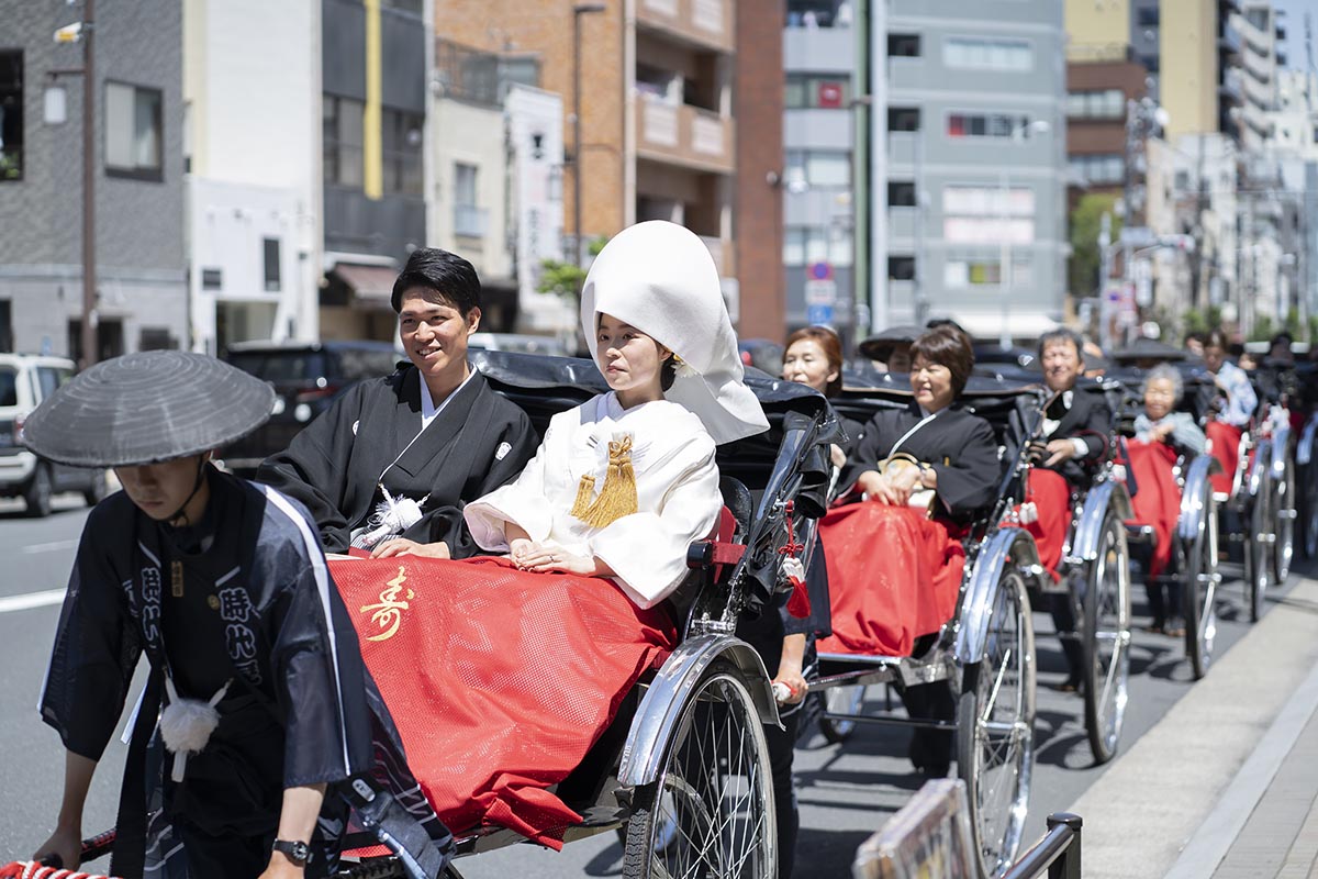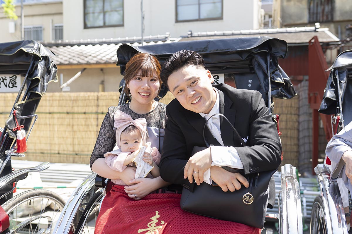 親族全員で人力車に乗り、浅草を周遊して会食会場に向かいました。