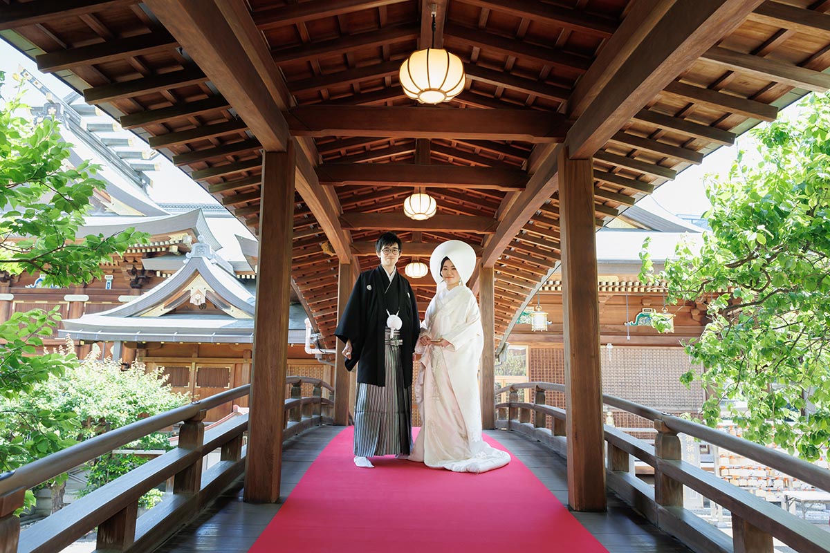 その中で、巫女舞、雅楽の生演奏など本格的な神前式ができる湯島天神が特に魅力的に思えました。さらに、新郎新婦が神社内の太鼓橋で撮った写真がとても素敵だったので決定!