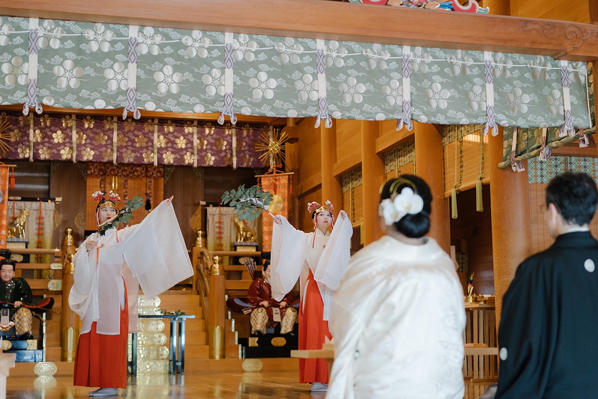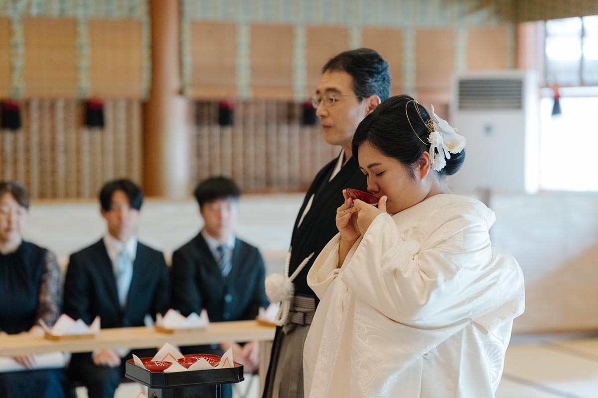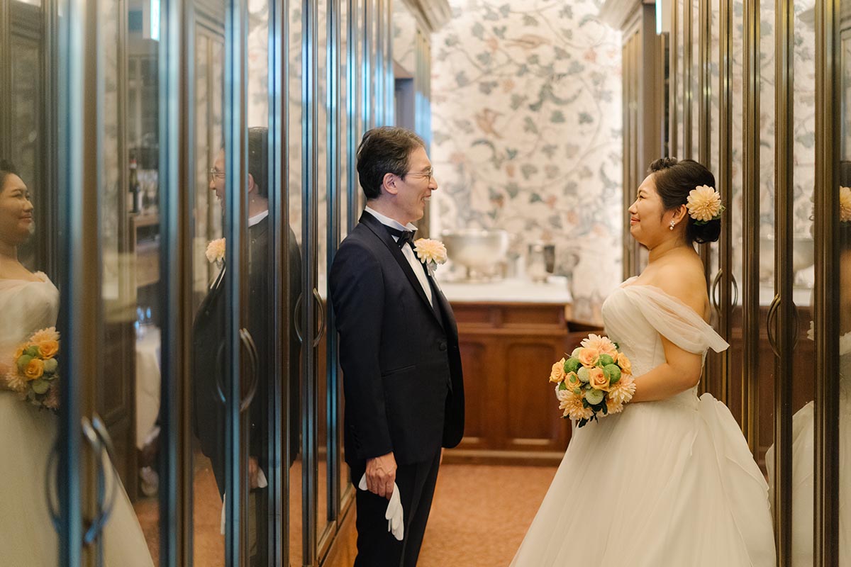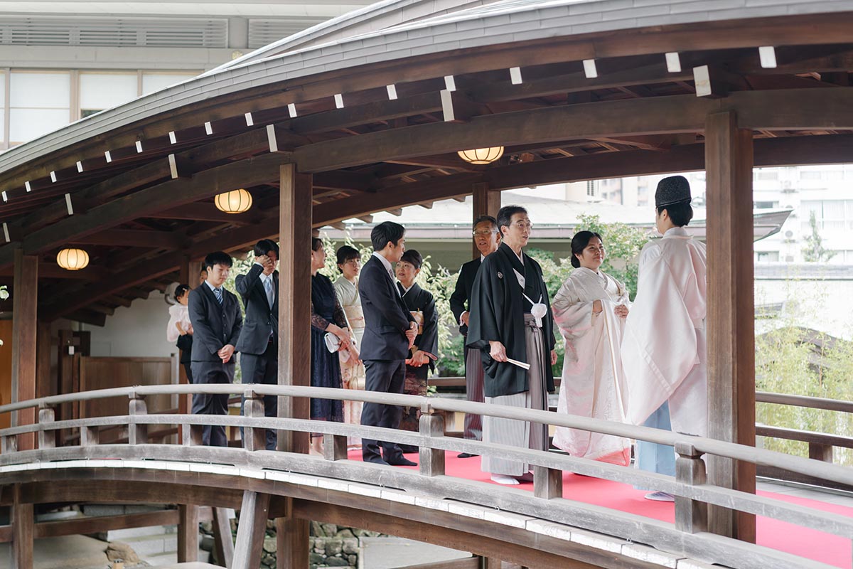 また、挙式は日本の伝統的な神社で行いたいと思っており、湯島天満宮のお太鼓橋や庭園など、こじんまりとした規模ながらも格調高い雰囲気が気に入り、挙式に選びました。
