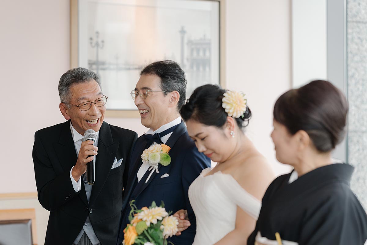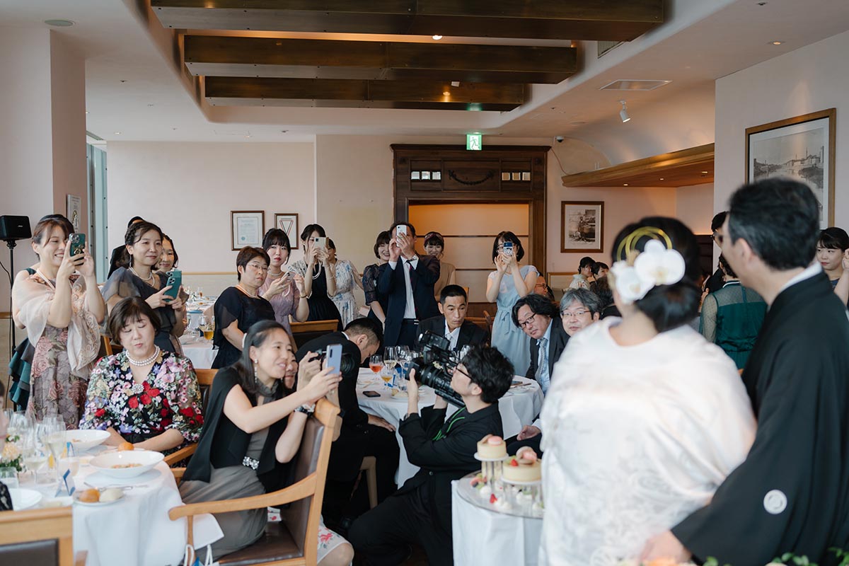 直前は台風の進路が全く読めず、開催に不安を覚える状況でしたが、当日はゲストが誰一人欠けることなく一緒に楽しい時間を共有でき、一生の思い出になりました!あっという間過ぎて夢のようでしたが、このような時間を持つことができ、披露宴を開催してよかったと心から思いました。