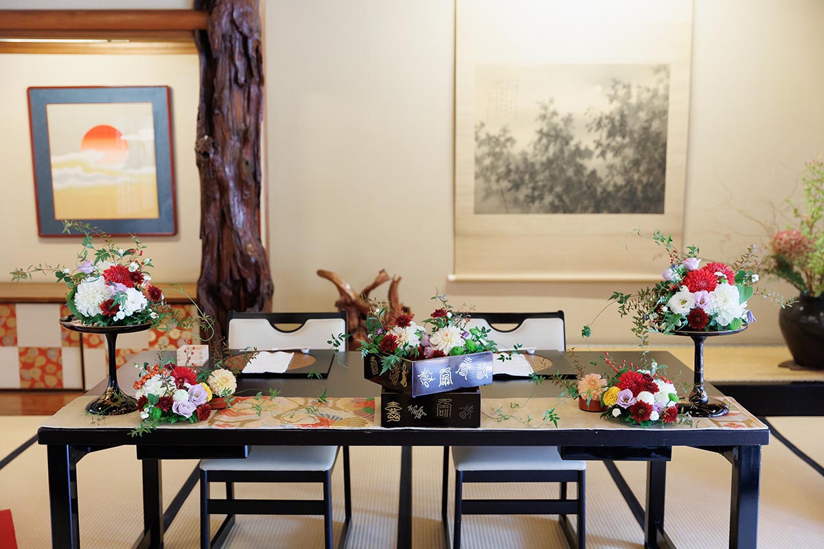 海外からの参列者も食事を楽しめるように和洋折衷な料理を考えていた私と違い、「日本人も最近は体験しないような、とことん和風な1日にしたい」という夫の想いを聞いて、披露宴には建物から純和風な一松さんに決定。