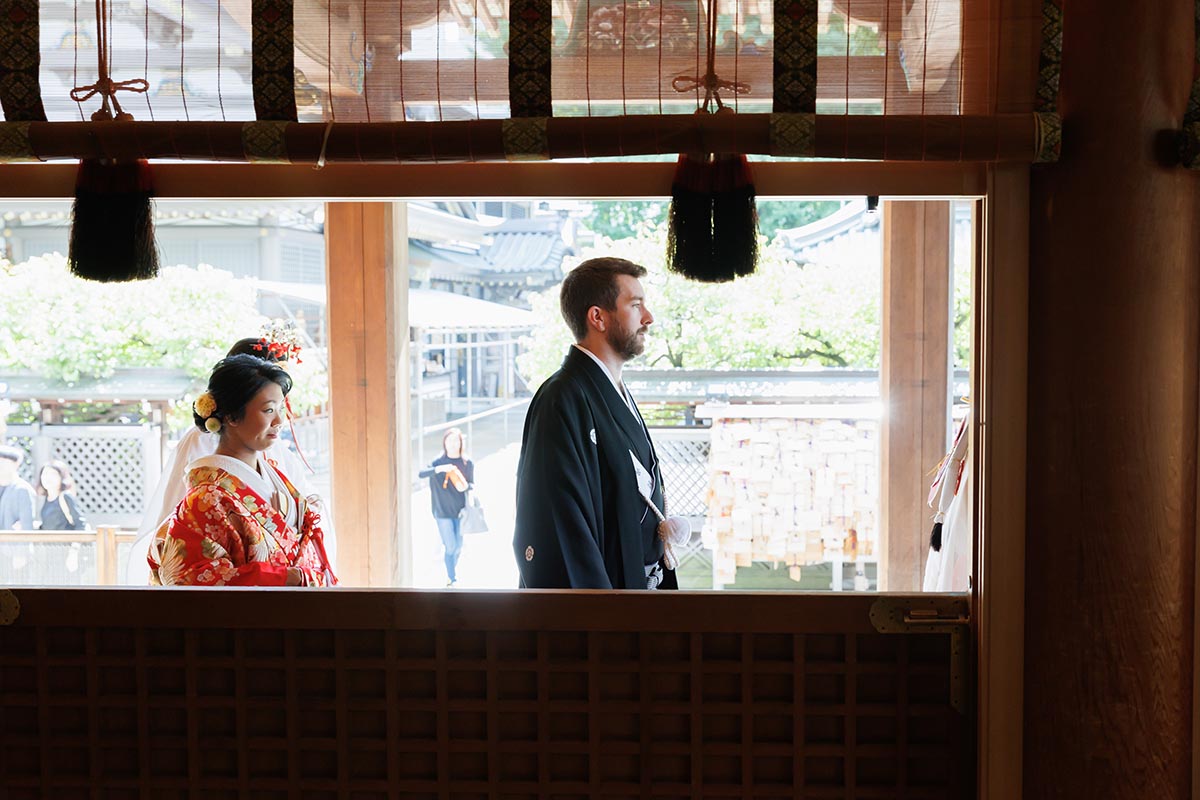 イギリスと日本の国際結婚のため日本語のわからない親族の参列が確実だったこと、また友人も日本人ではない人たちの参列が多く想定されていたことから、式の最中に周りを見て特別に感じてもらえるかという点が会場探しの際の懸念でした。外観は素敵でも天井の明かり取りにプラスチックが使用されている神社などを見学していたので、湯島天満宮さんは懸念点を一掃してくれるこれ以上に無い挙式会場でした。