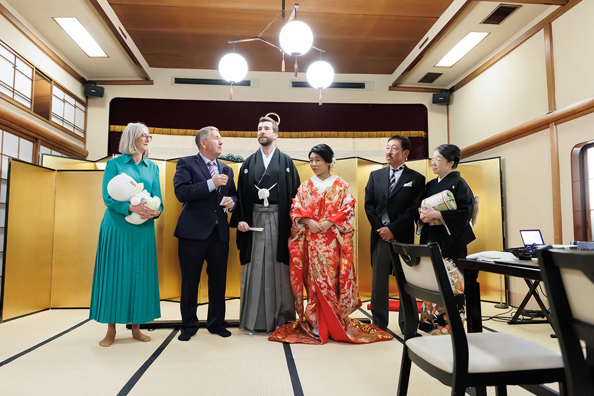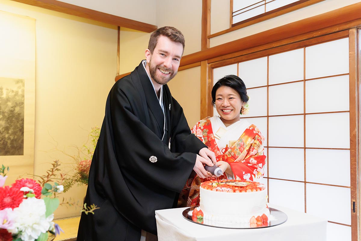披露宴では親族も友人に何も責任を負わせない、リラックスしつつ飽きのないひとときにしたい、と思っていたので余興等のアイディアが皆無なのが悩みでした。そこに一松ならではな余興として芸者さんを、またウエディングケーキにもだるまのデザインなど、海外勢にも日本人にもたくさん楽しんでもらえる提案を頂けて本当に助かりました。
