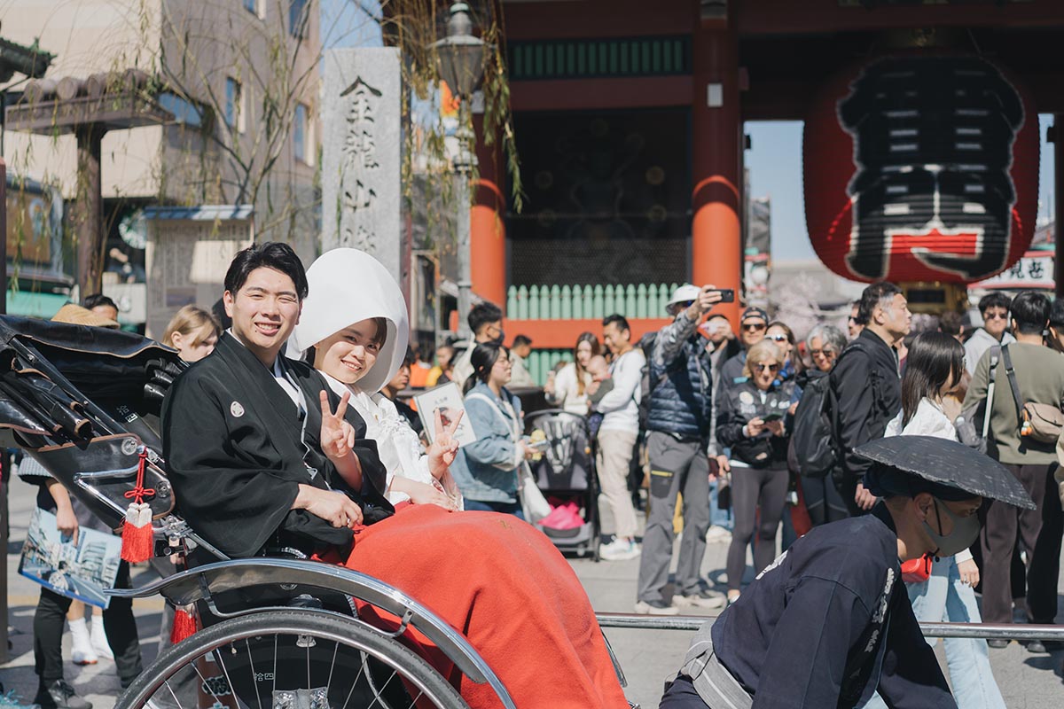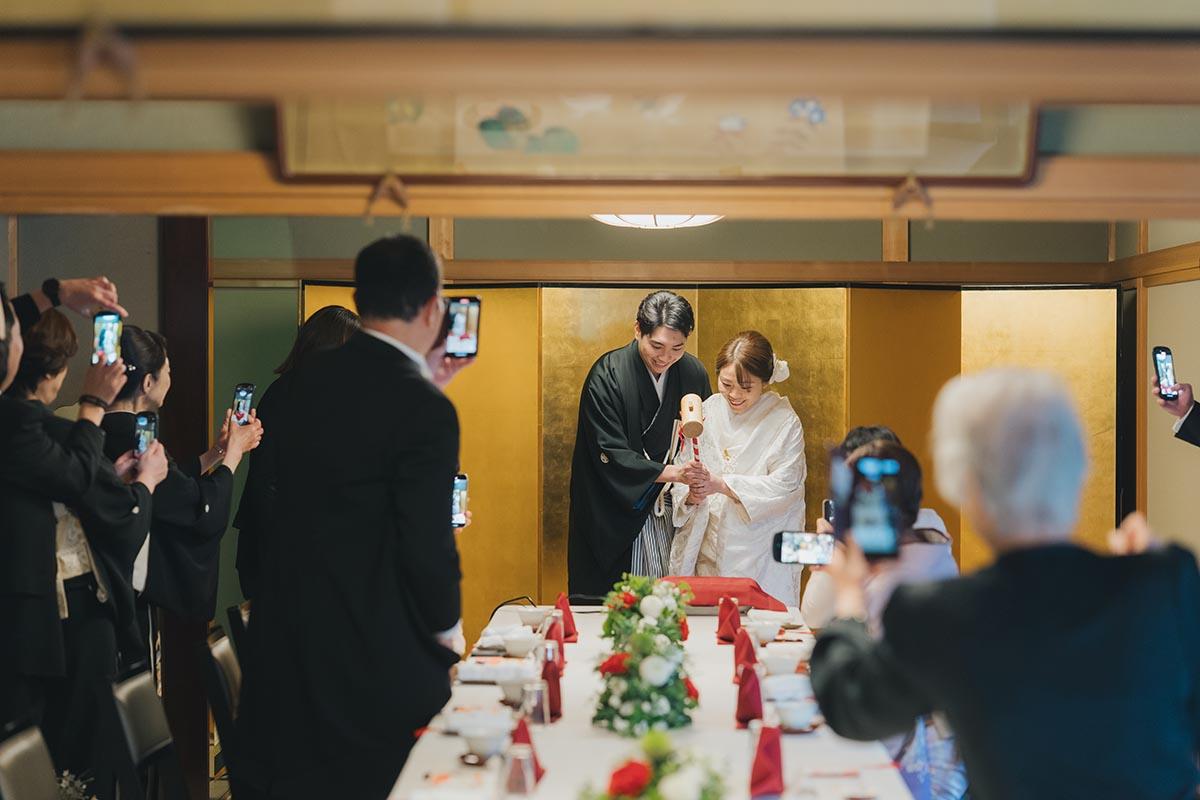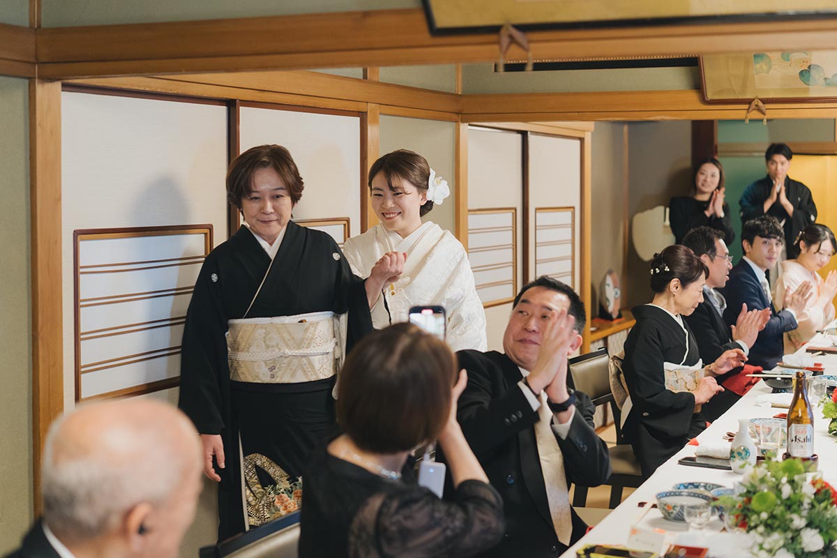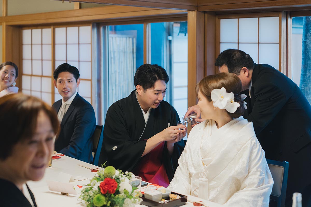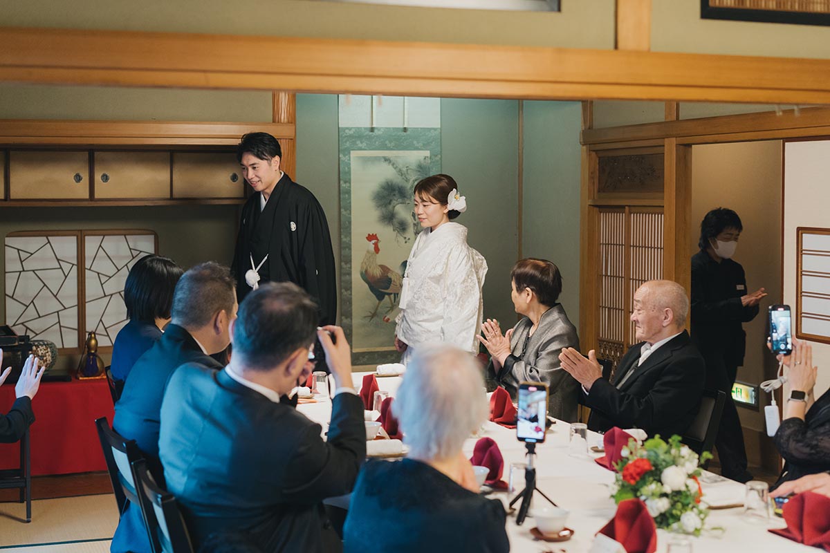 親族だけで結婚式を実施する形でしたので、厳かな感じではなく、親族みんなで食事会をする、といったような雰囲気を目指しました。披露宴の内容もいたってシンプルで、親族同士の会話を楽しんでもらいたいと思いました。特によかったのはべたですが、両親への手紙をみんなの前で読み上げる時間を設けたことは親族からも好評でした。人力車に乗って移動をしましたが、和装ならではの演出で、一生に一度の経験ができたこともよかったと思います。