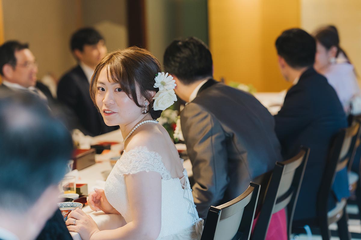 前述のとおり、親族だけの式および披露宴でしたが、特に食事はご参加いただいている皆さんに楽しんで、且つ満足していただけるように、食事のコースは量や質が高い、一番グレード良いものを選択しました。普段いけないようなお店で出される食事は、ご参加いただいた親族の皆さんから非常に好評で、且つ量も多かったので、非常に満足いただけました。また、夫婦ともども親族の皆様と一緒のテーブルで食事をしたのも、肩に力が入らず、和気あいあいとした雰囲気で楽しめたのも良かったです。