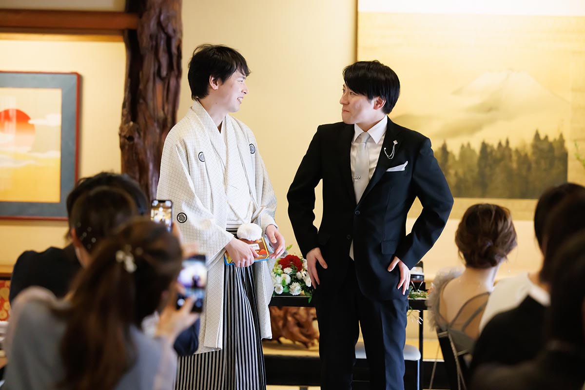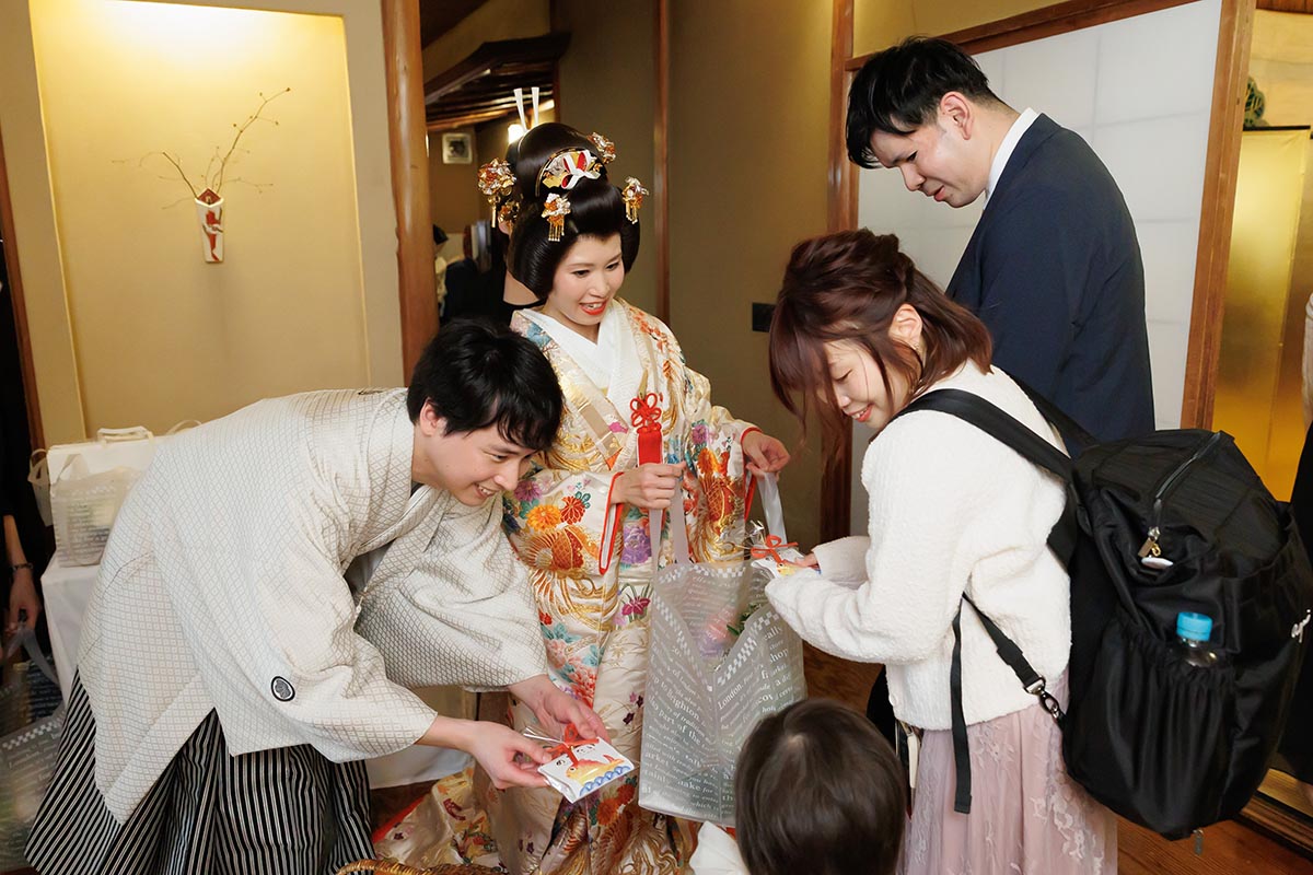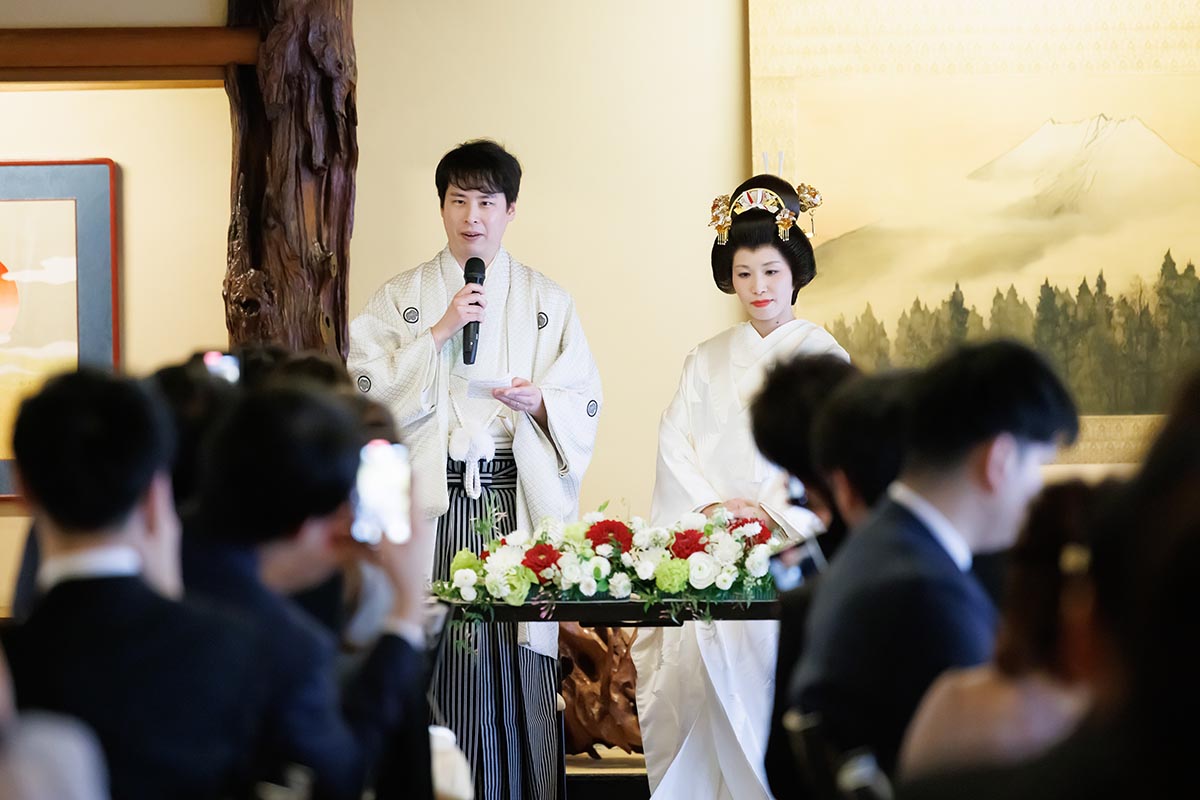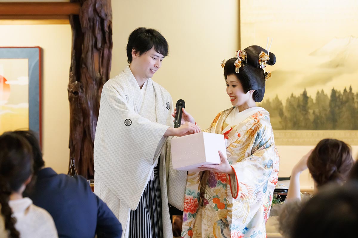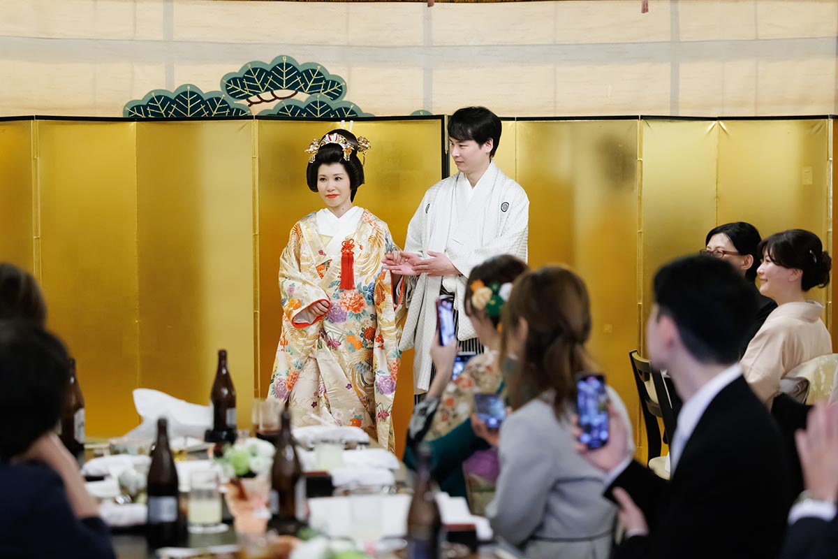 せっかく来ていただくゲストの方々の中にも和の披露宴を経験した事のある方は少なかったため、思う存分「和」を満喫してもらいたいと思っていました。