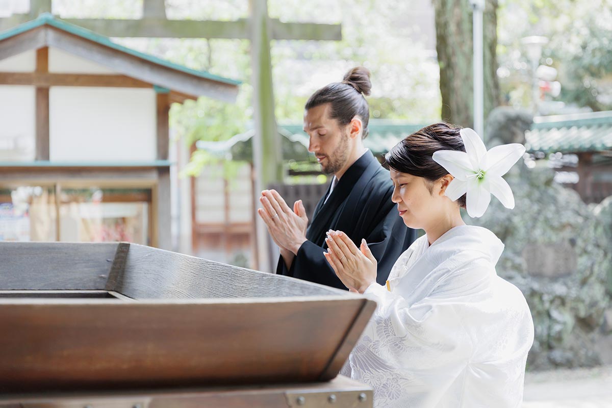 挙式に関しては、住んでいる家から近く、よく訪れる素敵な公園の中にある神社だったので、迷わずにここだと思って決めました。タイミングも挙式の時期に公園のリノベーションが終わる予定で、今まで以上に美しくなることも知っていたのでとてもありがたかったです。