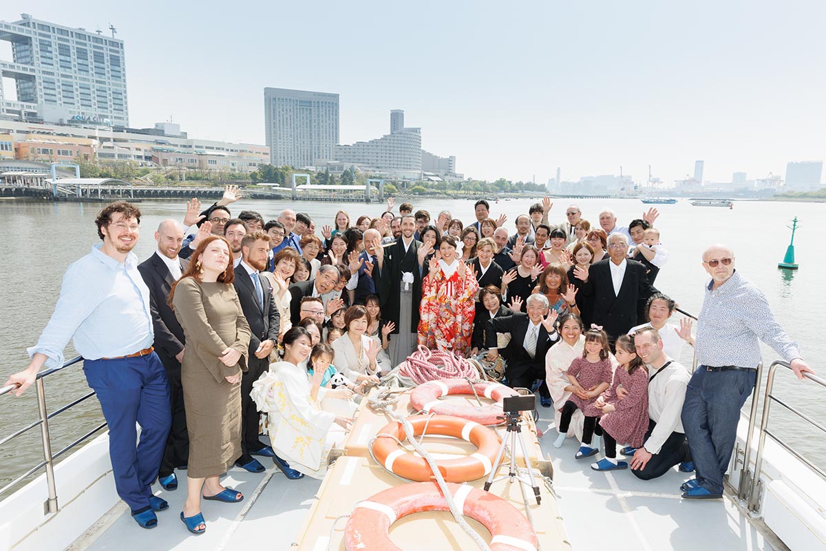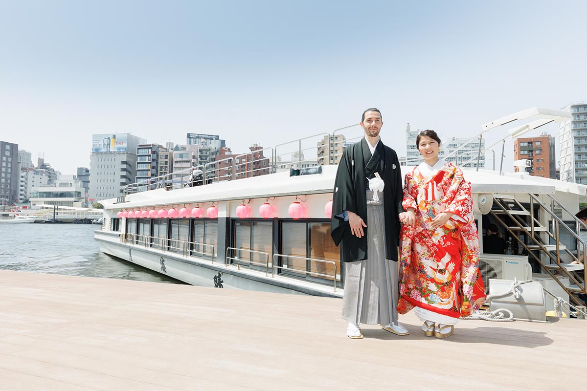 披露宴の会場に関しては、神社の神主さんに直に話をしたときにおすすめとして紹介してもらった中で、国際結婚ということもあり、屋形船が海外から来るゲストに対して東京観光もかねての接待になり、喜んでもらえるのではないかと思い、こちらもあまり迷うことなく決めることができました。