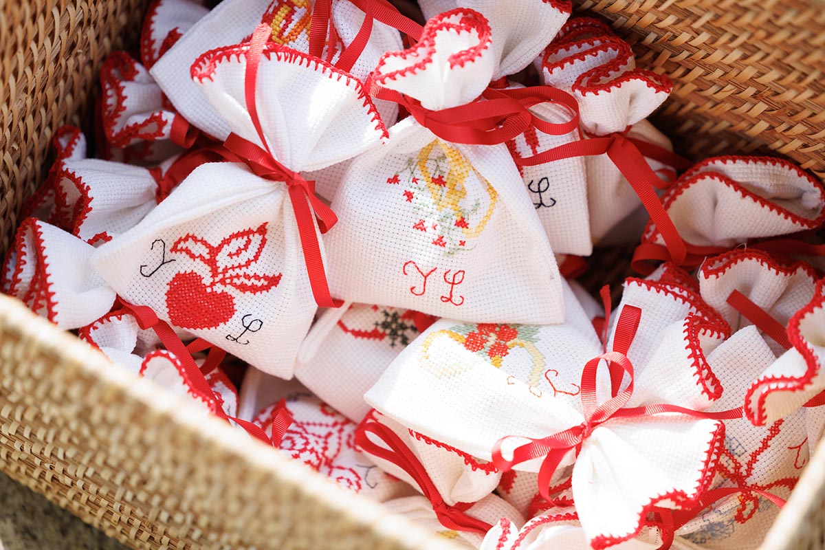 結婚式のテーマは「和モダン」にしていましたが、屋形船の料理に関しては内容を選ぶことができなかったため、食事に関してあえて「和」で統一しました。海外のゲストにはベジタリアンも数名いたため、ベジタリアンメニューも用意しました。会席料理だったため、海外のゲストにも食材の内容が分かるように英語とイタリア語のメニューの素材表も作成し、事前に司会者に共有し、万が一に備えました。