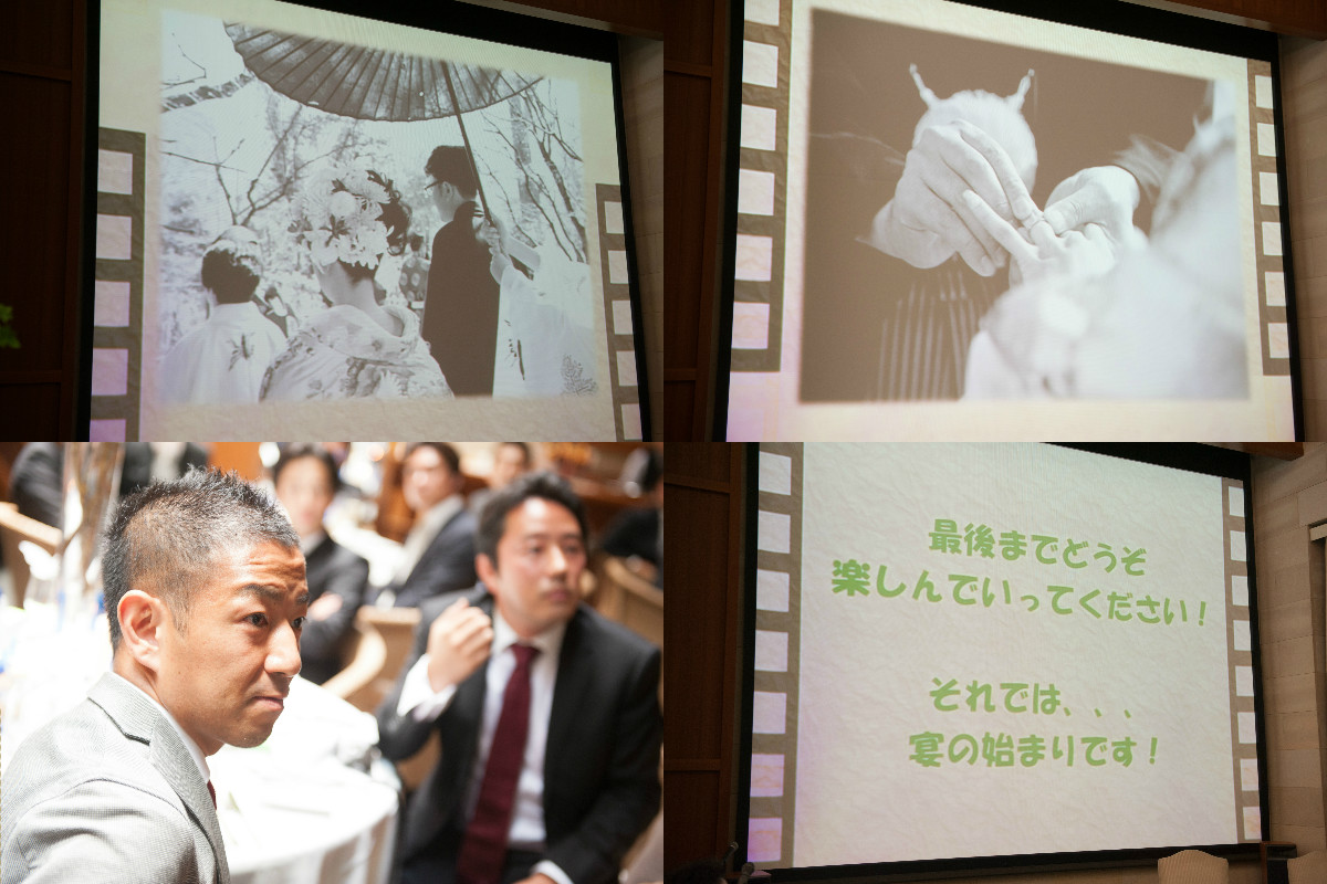 二つ目は、エンドロール。ゲストの似顔絵を新郎新婦が似顔絵制作ソフトで作成し、お気に入りの音楽に合わせて流しました。人数分の似顔絵作成は大変でしたがゲスト一人一人に向き合う時間ができたこと、ゲストへの感謝の気持ちを今までにない形で伝えることができ、こちらも大好評で盛り上がりました。