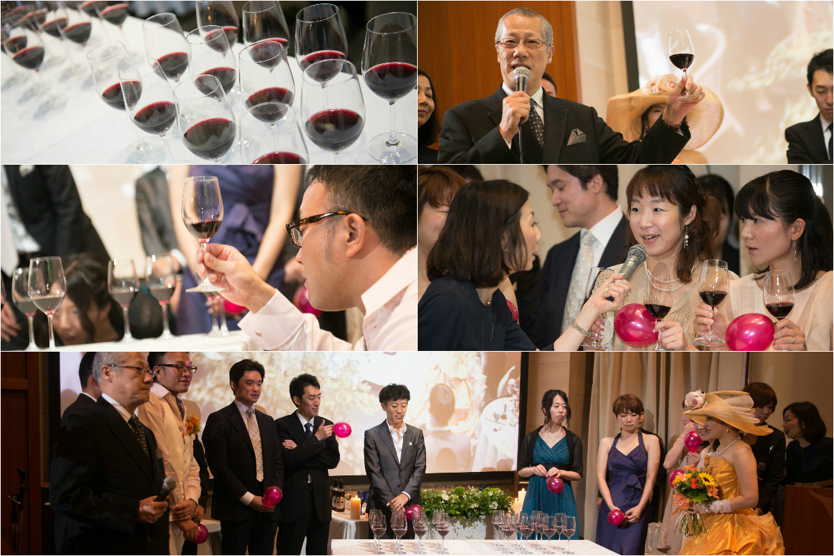 ゲスト参加型の終始楽しい一日にしたいがモットーでしたので、その他にも人前式はリズムのよい音楽にあわせて手拍子しながら入場したり、ワインテイスティングゲームを行ったり、楽しいこと盛りだくさんの一日にしました。